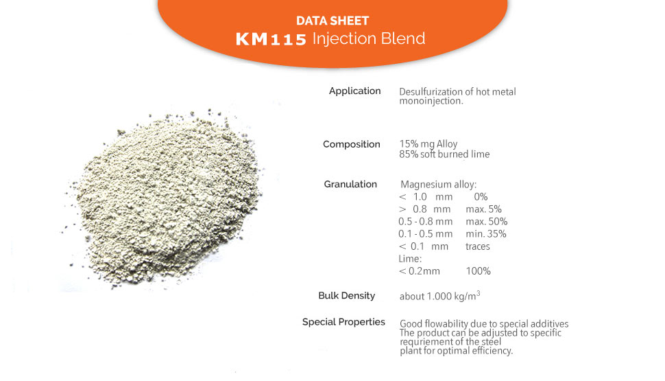 Tests concerning the desulfurization of hot metal by the injection of fluidized lime shows significant effects. By a mixture of granulated magnesium and fluidized lime, the lime injected with magnesium into the hot metal has great cost savings potential towards the desulfurization process. In this way, the sulfur content can be reduced to very low levels. In order to reduce the loss of hot metal when removing the impurities floating at the surface, some fluxing agents are added to the injected mix.